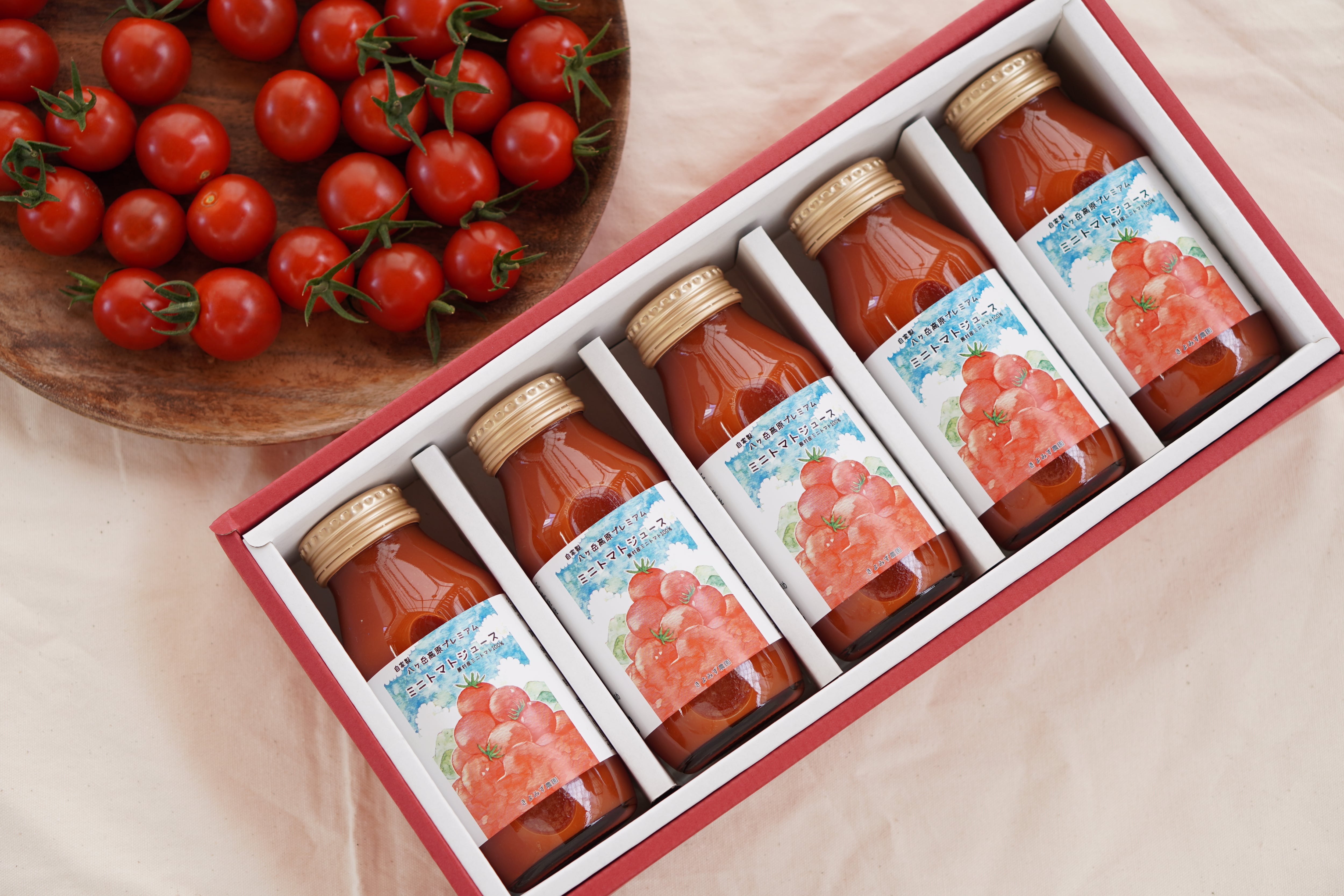 八ヶ岳高原産ミニトマトのみを使用したトマトジュースです。自家栽培の真っ赤に熟したミニトマトを一つ一つ下処理し、自社加工所で丁寧にジュースにしています。ミニトマトの強い甘みと濃厚なコクが特徴のトマトジュースです。高原の豊かな自然の恵みをぜひご賞味ください。化粧箱入りなので、大切な方への贈り物にもぴったりです。
